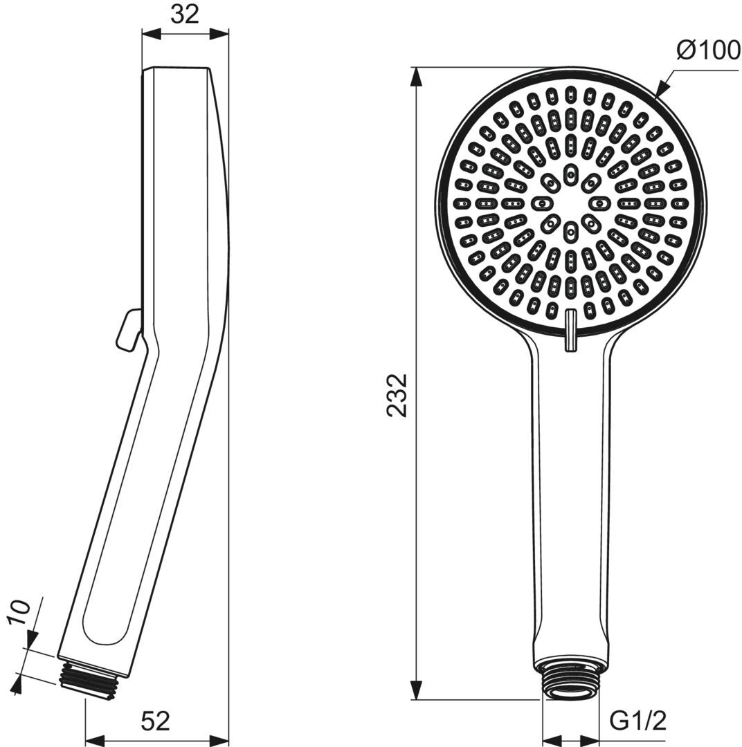 Ručná sprcha Idealrain Alu+ Ručná sprcha Ø100 mm, 2 funkcie (SilkRain & Rain). EasyClean – silikónové trysky pre ľahkú údržbu. Obmedzovač prietoku  8 l/min.
