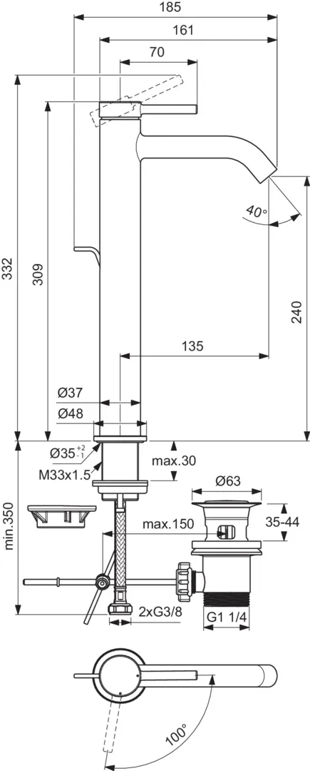CERALINE NUOVO Umývadlová batéria vysoká H240 Blue Start, s odpadovou garnitúrou, BD763AA
