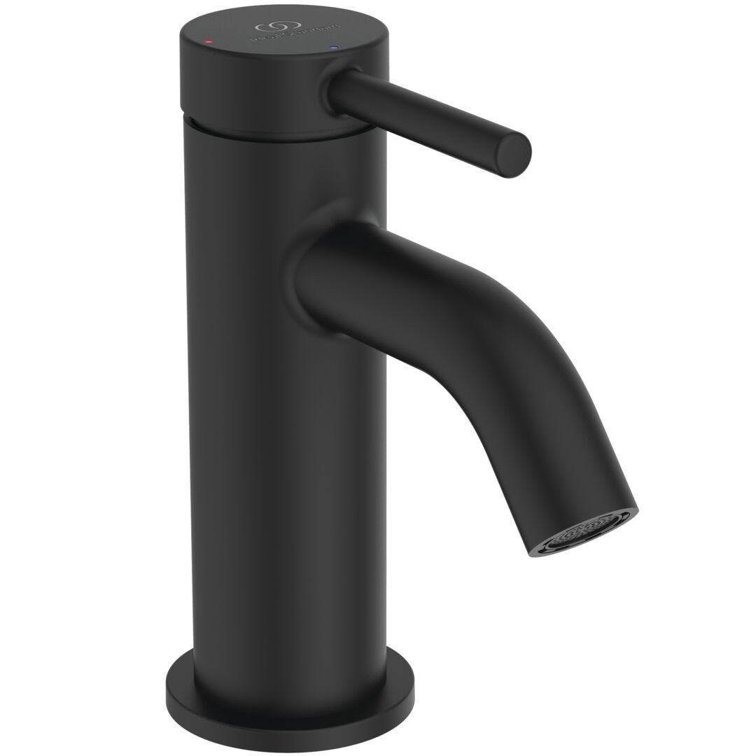Umývadlová batéria H65 Blue Start 28 mm FirmaFlow keramická kartuša s obmedzovačom teplej vody s odpadovou garnitúrou. Povrchy:Technológia termoplastickej práškovej farby - čierná matná Silk Black. Kovové ovládacie páka s farebným značením červená a modrá. Verzia s Blue Start funkcií. Skrytý perlátor 3,8 l/min (+kľúč). Easy Fix inštalácia. Flexibilná pripojovacia hadica G3/8“. Udržateľné balenie (žiadne plastové vrecká). Zodpovedá norme EN817.