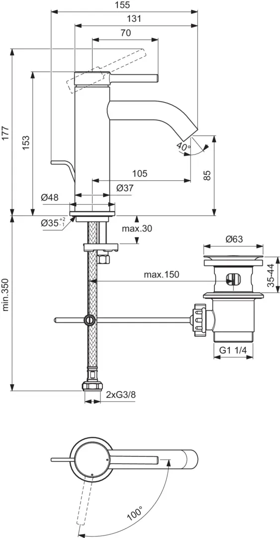 CERALINE NUOVO Umývadlová batéria H85 Blue Start, s odpadovou garnitúrou, BD758AA