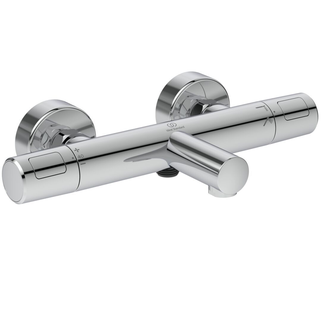 CeraTherm T25 vaňová nástenná termostatická batéria farba povrchu galvanizovaný chróm. DN 15. So zariadením na zamedzenie zpätného toku. Vývod 161 mm. Nová termostatická kartuša s vylepšenou technológiou nastavenia a kontroly teploty vody, regulácia teploty vody a ochrana proti obareniu. Štíhlejšie telo batérie Ø 41 mm so zdokonalenou technológiou CoolBody, vďaka nej telo termostatickej batérie zostane chladné po celom povrchu. Skryté S-prípojky s nízkou hlučnosťou (nastaviteľné od 137 - 163 mm). Funkcia AntiKalk - systém proti tvorbe vodného kameňa. Obmedzovač teplej vody - detská poistka. Kovové ovládacia rukoväte. Ľavá pre reguláciu prietoku i teploty vody, pravá so zabudovaným prepínačom, pre prepínania medzi vaňou a sprchou. V súlade s EN 1111