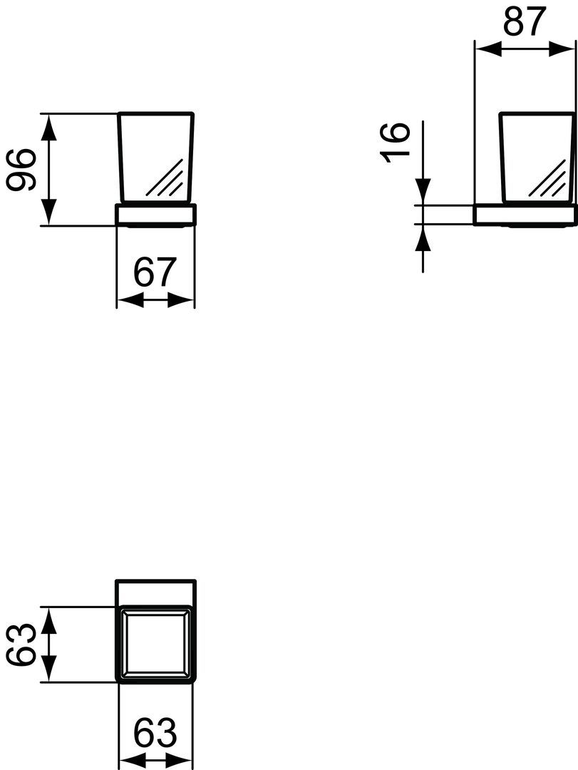 Conca pohár na zubnú kefku hranatý, kovový Inštalácia na stenu Matné sklo Vrátane upevňovacej sady