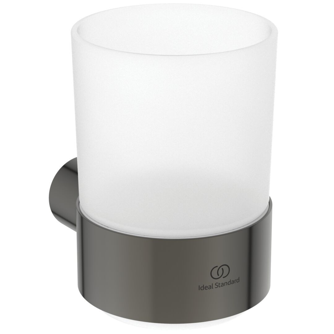 Conca pohár na zubnú kefku okrúhly, kovový Inštalácia na stenu Matné sklo Vrátane upevňovacej sady