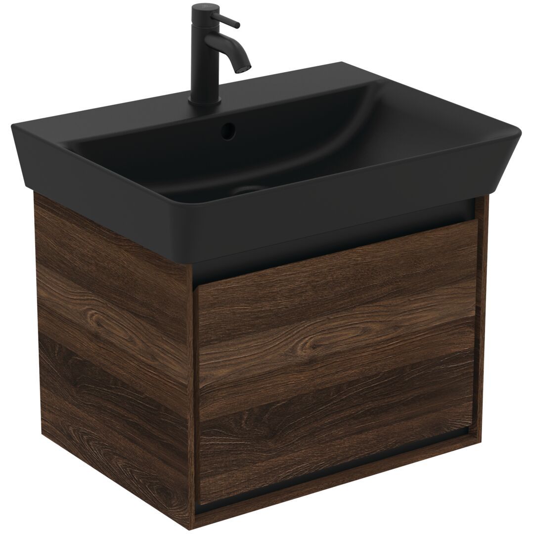 Connect Air skrinka pod nábytkové umývadlo vrátane upevňovacej sady. 1x zásuvky s Soft-close zatváracím mechanizmom. Povrch drevodekor vlašský orech / vnútro čierná.