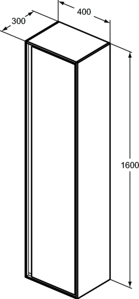 Connect Air vysoká skrinka  160x40 cm vrátane upevnenia. 1 dvierka so Soft-Close zatváracím mechanizmom. 4 vnútorné police (3 sklenené, 1- drevená). Reversibilná (možno inštalovať ako pravú i ľavú verziu).