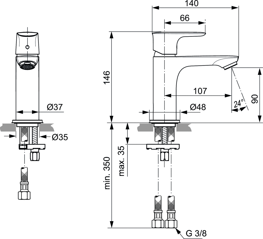 CONNECT AIR Umývadlová batéria Slim bez odpadovej garnitúry a flexibilnými hadicami, A7010A2