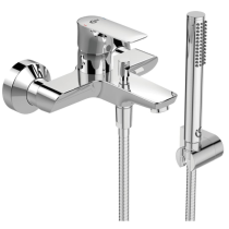 Connect Air vaňová batéria nástenná s príslušenstvom, farebné prevedenie chróm, DN 15. CLICK - technologie. So zariadením na zamedzenie spätného toku. Vývod 174 mm. Skryté S-prípojky s nízkou hlučnosťou (nastaviteľné od 135-165 mm). Kovová ovládacia páka. Automatický prepínač zo sprchy do vane. CLICK kartuša Ø 38 mm s keramickými diskami. Pivot kartuše z nerezovej ocele. Rozsah otáčania páky 100°. Integrovaný zásobnik maziva (vhodné pre potravinárske použitie). Životnosť testovaná podľa EN 817. Ochrana proti hluku DIN 4109, trieda 1.