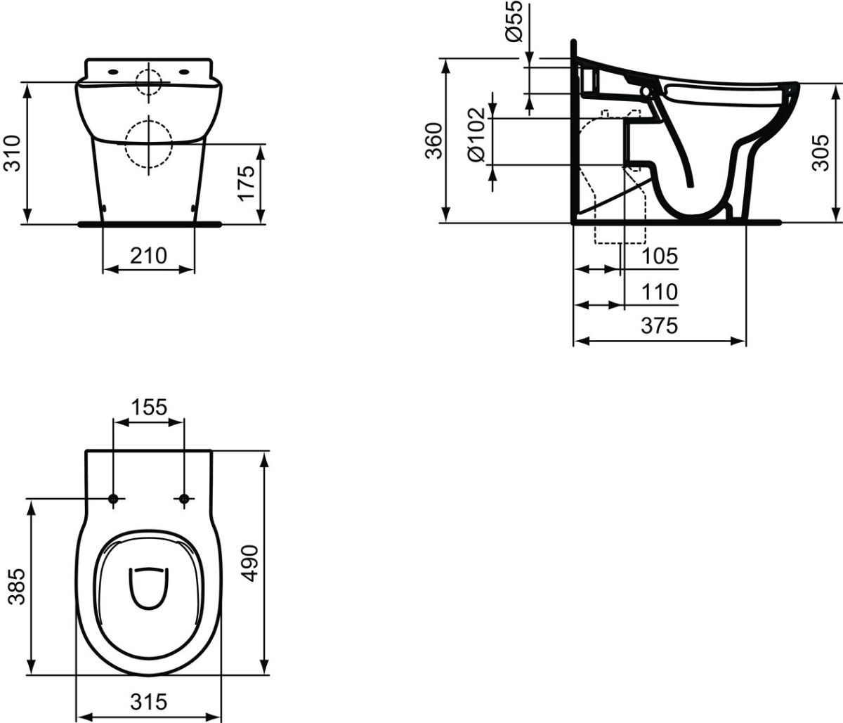 upevňovacie sady (TT0257919). Výška klozetu 355 mm alebo 305 mm. Pre