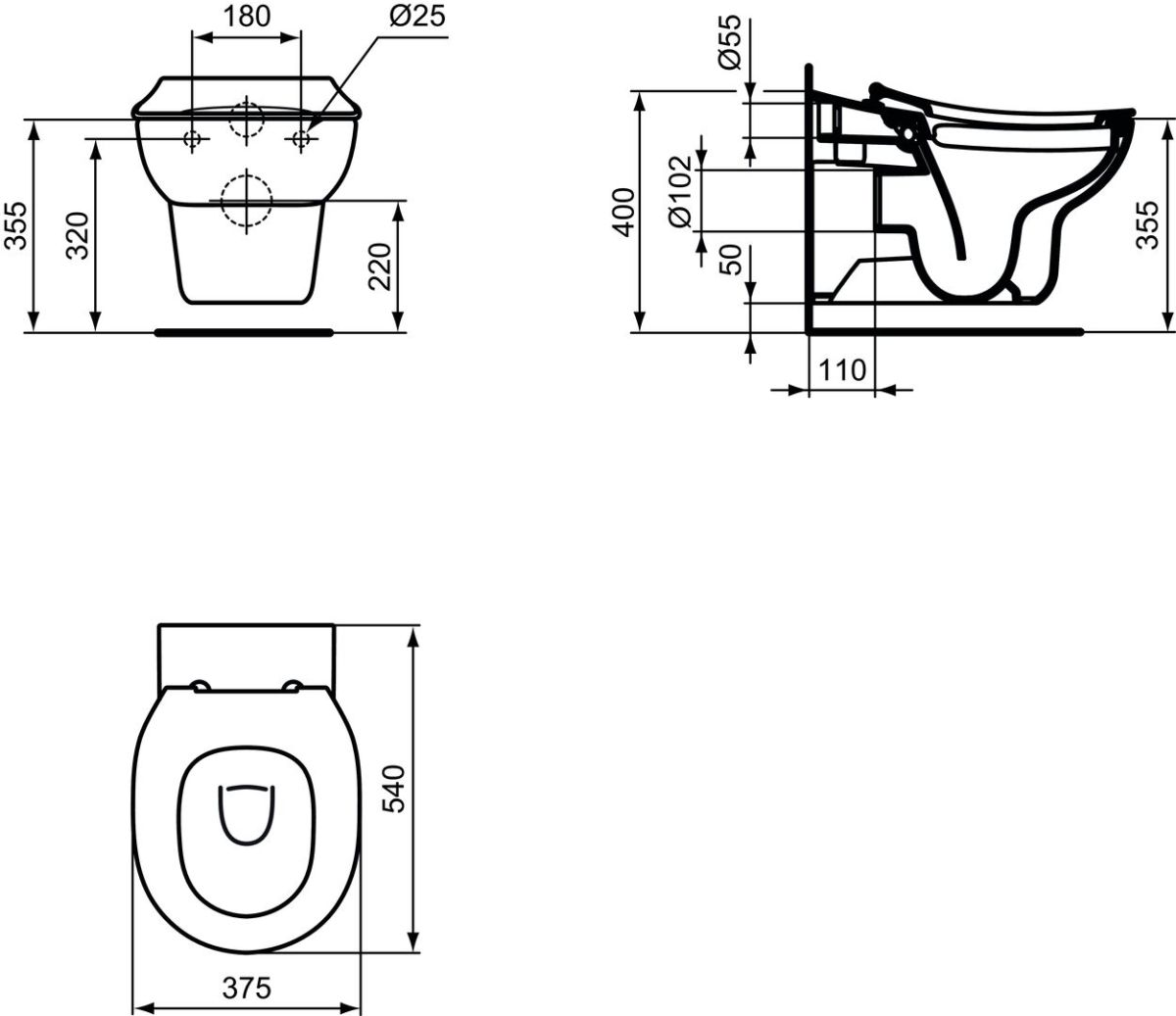 Skryté upevnenie (TT0299327) – súčasťou balenia. Výška záchoda 355 mm. Pre