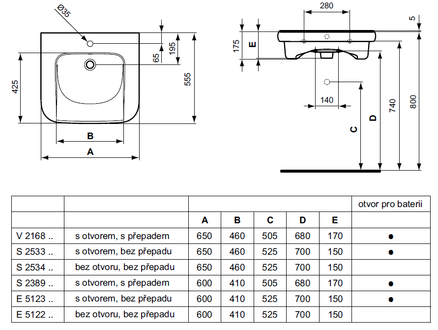 Bez prepadového otvoru.