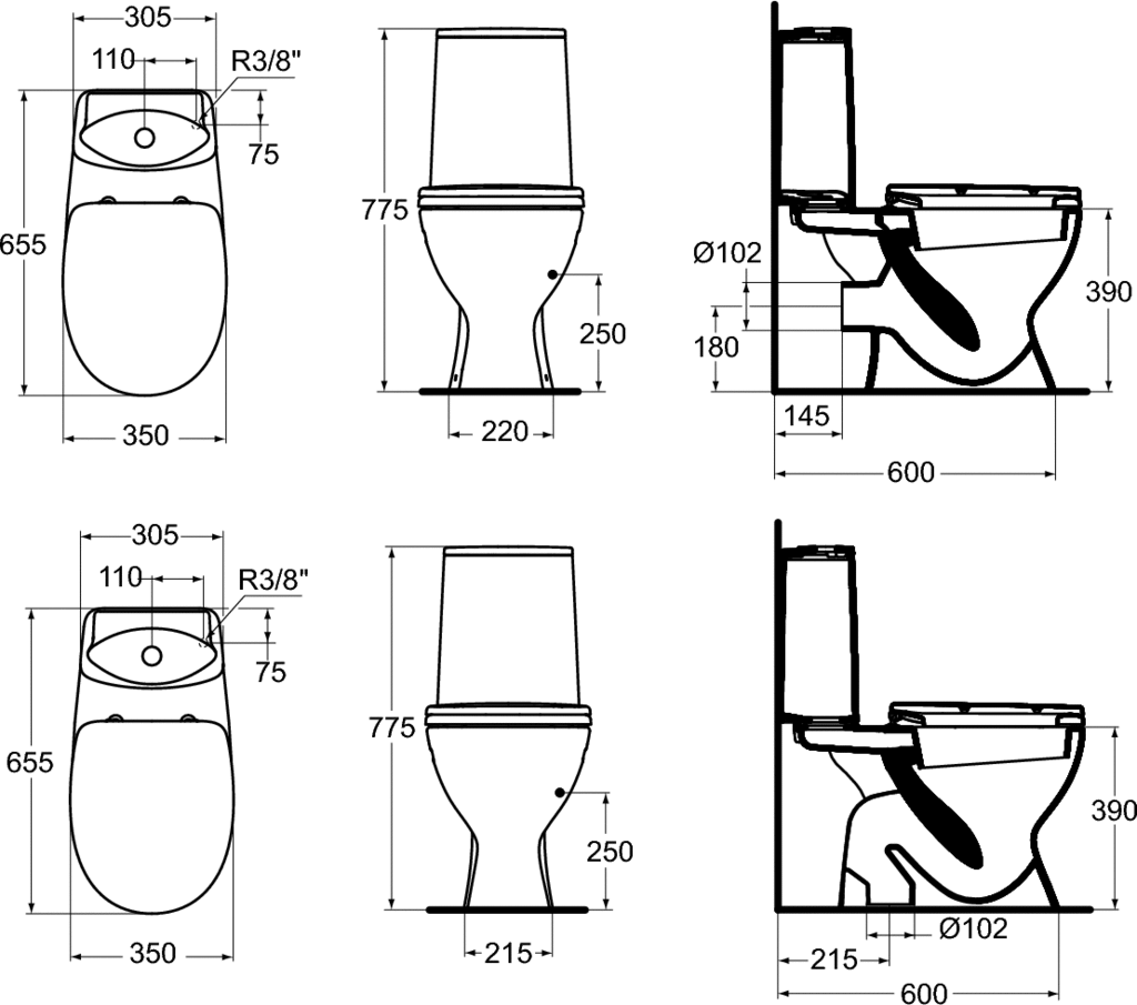 Eurovit Oceane WC kombi 65,5x35 cm, rovný odpad, W911901 Čítať viac