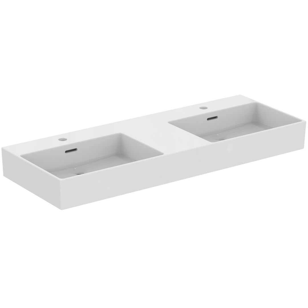 Extra dvojumývadlo 120x45 cm, s otvorom pre batériu, farba biela matná, s prepadovým otvorom, T3913V1 Čítať viac