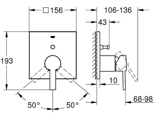 Allure vaňová batéria podomietková, diel 2  Rozmery rozety 156x156 mm - kovová. Kovová ovládacia páka so značením teplá/studená zhora na ovládacej páke, chromová krytka. S automatickým prepínaním zo sprchy do vane.  Kartuša  Ø46 mm s keramickými diskami.