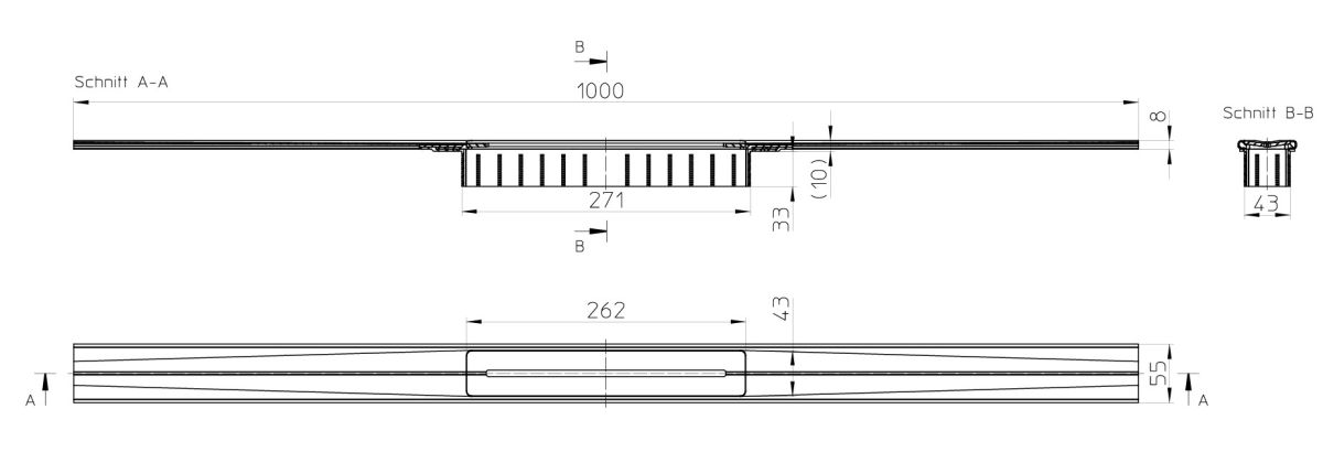 HL053S/100 In/Floor sprchový odtokový žľab z nerez. ocele Standard matný povrch, HL053S/100