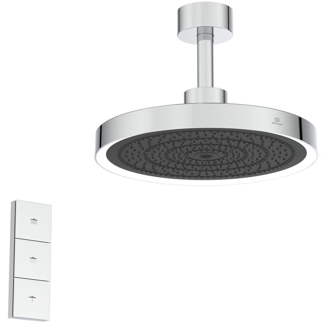 IdealRain Solos 3-funkčná hlavová sprcha Ø 330 mm s LED svetlom, s diaľkovým ovládaním, so stropným pripojením, farba povrchu chróm,A7891AA Čítať viac