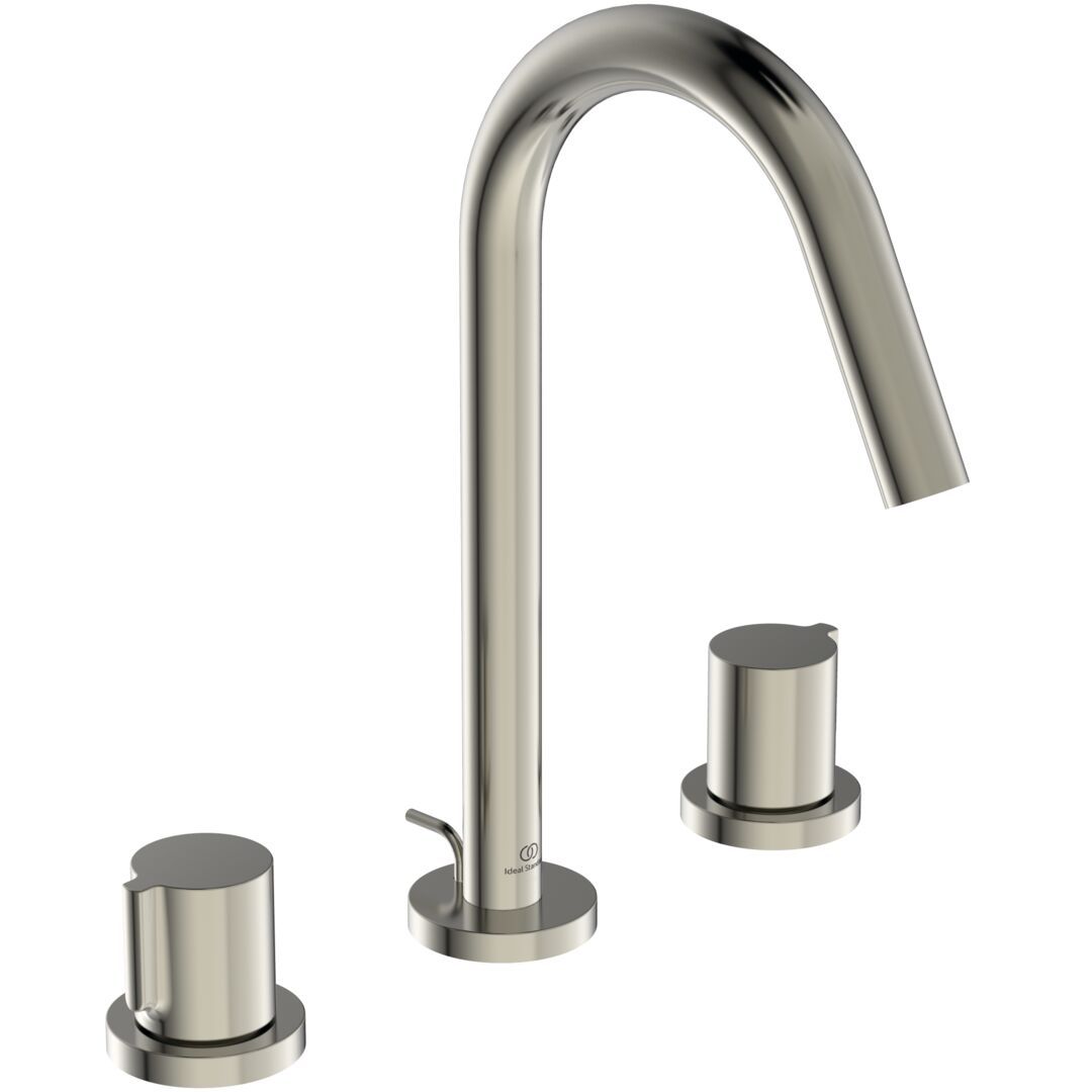 Joy umývadlová 3-otvorová batéria s odtokovou garnitúrou. Povrchy:  Technológia PVD  GN Silver Storm ušľachtila kartáčovaná nerezová oceľ. Ozdobná spodná časť tela. Rúrkový výtok s logom Ideal Standard. Ovládacie rukoväte bez označenia studená/teplá (modrá/červená potlač). Caché skrytý aerátor M16,5x1 s obmedzovačom prietoku vody na 5 l/min. Keramické ventily on-off (v smere a proti smeru hodinových ručičiek. Flexibilná hadica PEX G3/8” pre prívod vody. Kovová odtoková garnitúra.