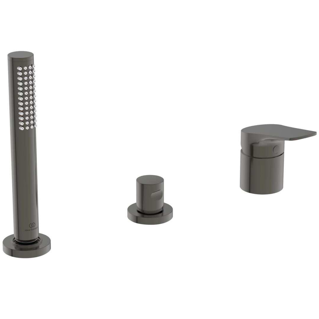 Vaňová batéria 3-otvorová 38 mm FirmaFlow keramická kartuša s obmedzovačom teplej vody S príslušenstvom (Stick kovová ručná sprcha 8l/min, sprchová hadica 1750mm Idealfl ex) Kovová páka bez značenia teplá/studená automatický prepínač Len na použitie s Multiplex Trio (odtoková a prepadová súprava vrátane napúšťanie, ø 52 mm) K7807AA alebo s voľne stojacou vaňovou hubicou A7387AA