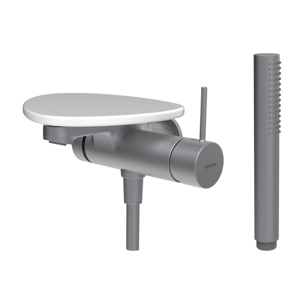 LAUFEN ADA Vaňová podomietková páková batéria pre 1-bodový Simibox, s ručnou sprchou a hadicou, vrátane poličky bez otvoru, PVD nerez/biela lesklá 501, HF506765501060