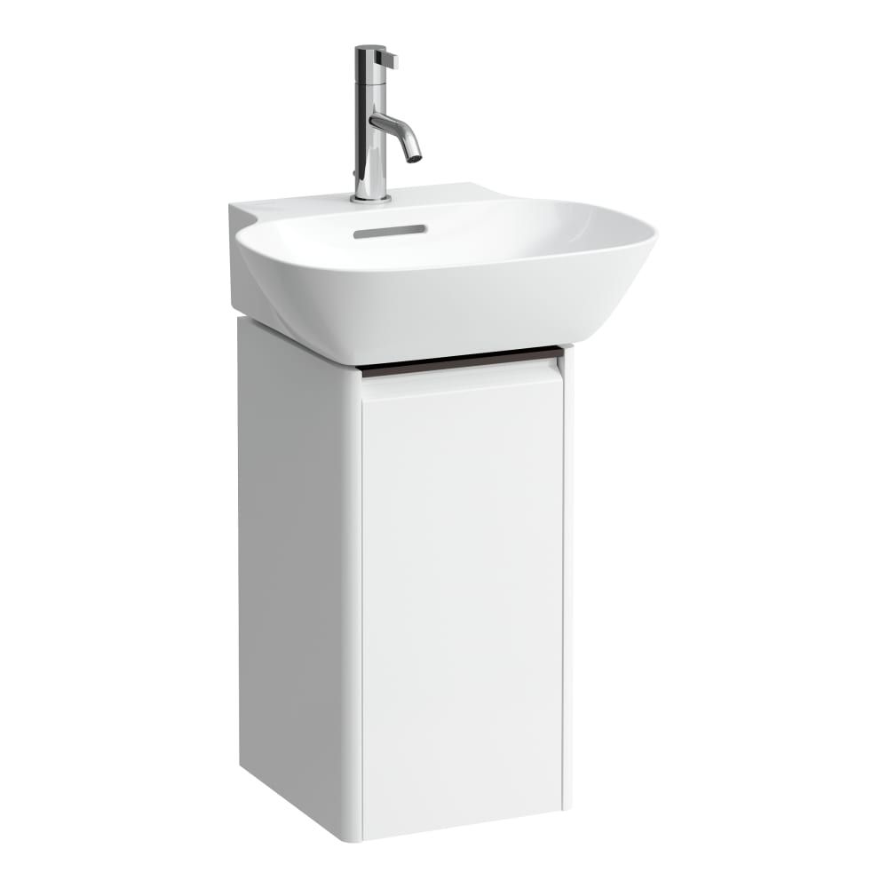 LAUFEN BASE Skrinka pod umývadlo, 1 dvierka, závesy vľavo, 1 vnútorná polička, pre umývadielko 815301, s držiakom z tmavého hliníka, 275x295x515 mm, Biela matná 260, H4030131102601