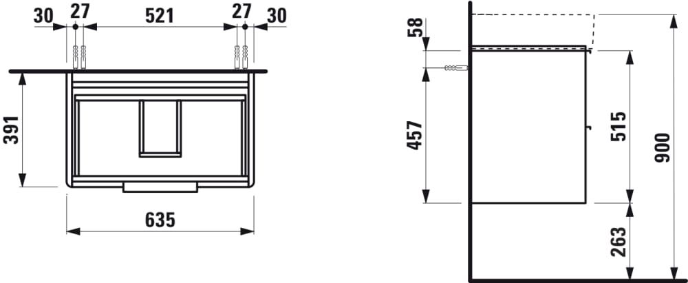 LAUFEN BASE Skrinka pod umývadlo, 2 zásuvky, pre umývadlo H810284, 635x390x530 mm, Tmavohnedý brest 263, H4023121102631