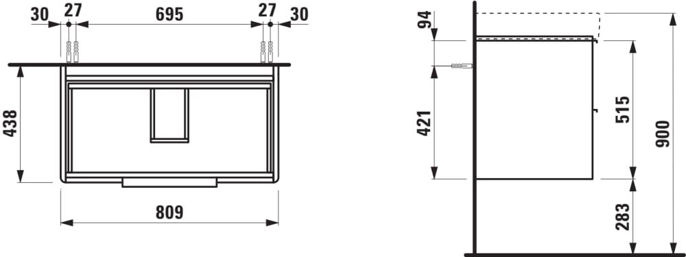 LAUFEN BASE Skrinka pod umývadlo, 2 zásuvky, pre umývadlo H813965, 810x440x530 mm, Šedá traffic 266, H4023921102661