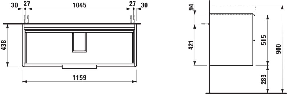 LAUFEN BASE Skrinka pod umývadlo, 2 zásuvky, pre umývadlo H814965, 1160x440x530 mm, Multicolour farby 999, H4024921109991