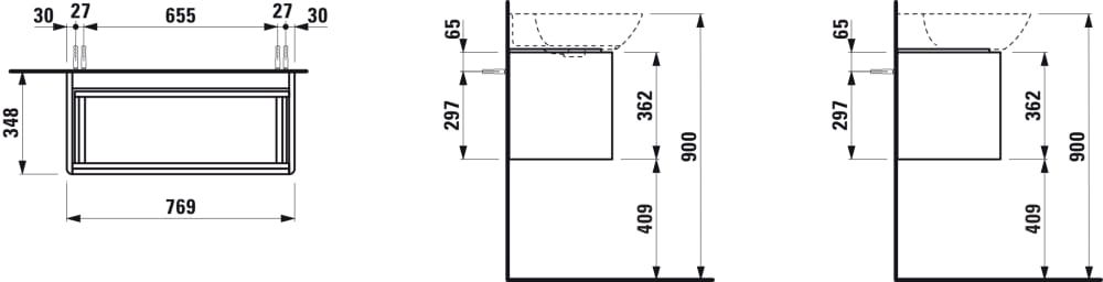 LAUFEN BASE Skrinka pod umývadlo, s 1 zásuvkou, pre umývadlá 813301, 813302, s držiakom z tmavého hliníka, 770x350x360 mm, Bledý brest 262, H4030031102621