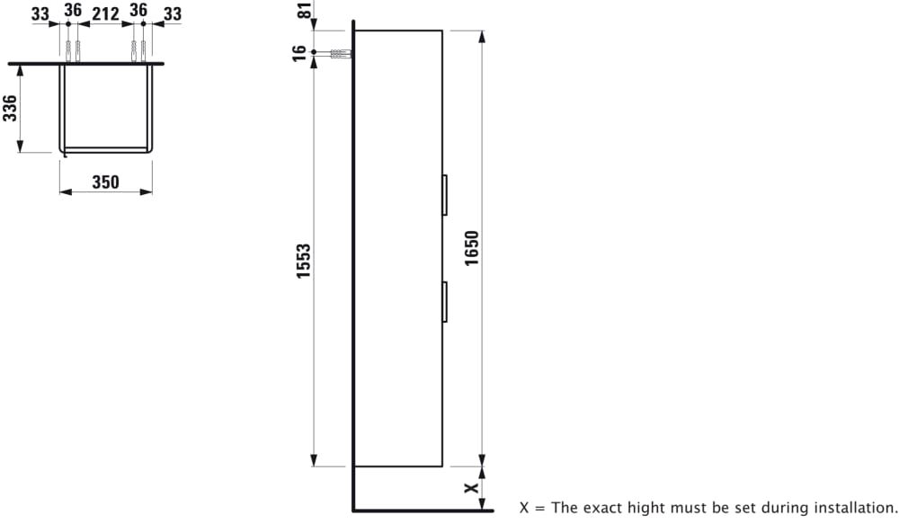 LAUFEN BASE Vysoká skrinka, 2 dvierka a zásuvka, pánty dvierok vpravo (bočnice korpusu s rádiusom), 350x335x1650 mm, Tmavohnedý brest 263, H4027121102631