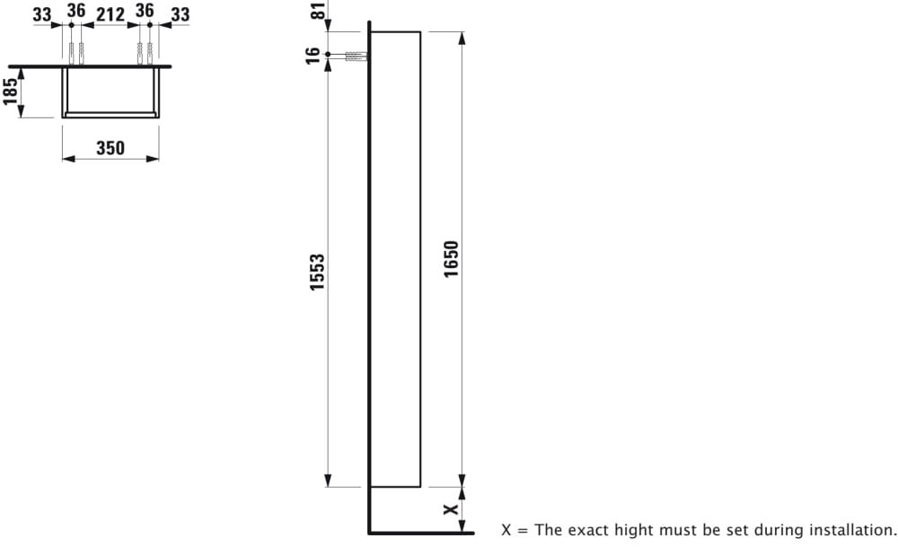 LAUFEN BASE Vysoká skrinka, pánty dvierok vľavo (bočnice korpusu s výrezom), 350x185x1650 mm, Multicolour farby 999, H4026511109991