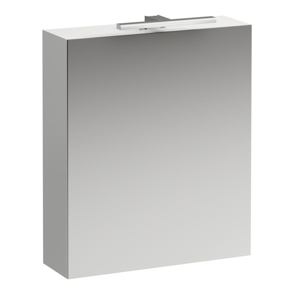 LAUFEN BASE Zrkadlová skrinka, pánty dvierok vľavo, osvetlenie, el. zástrčkou EU IP44, 600x185x700 mm, Biela lesklá 261, H4027511102611