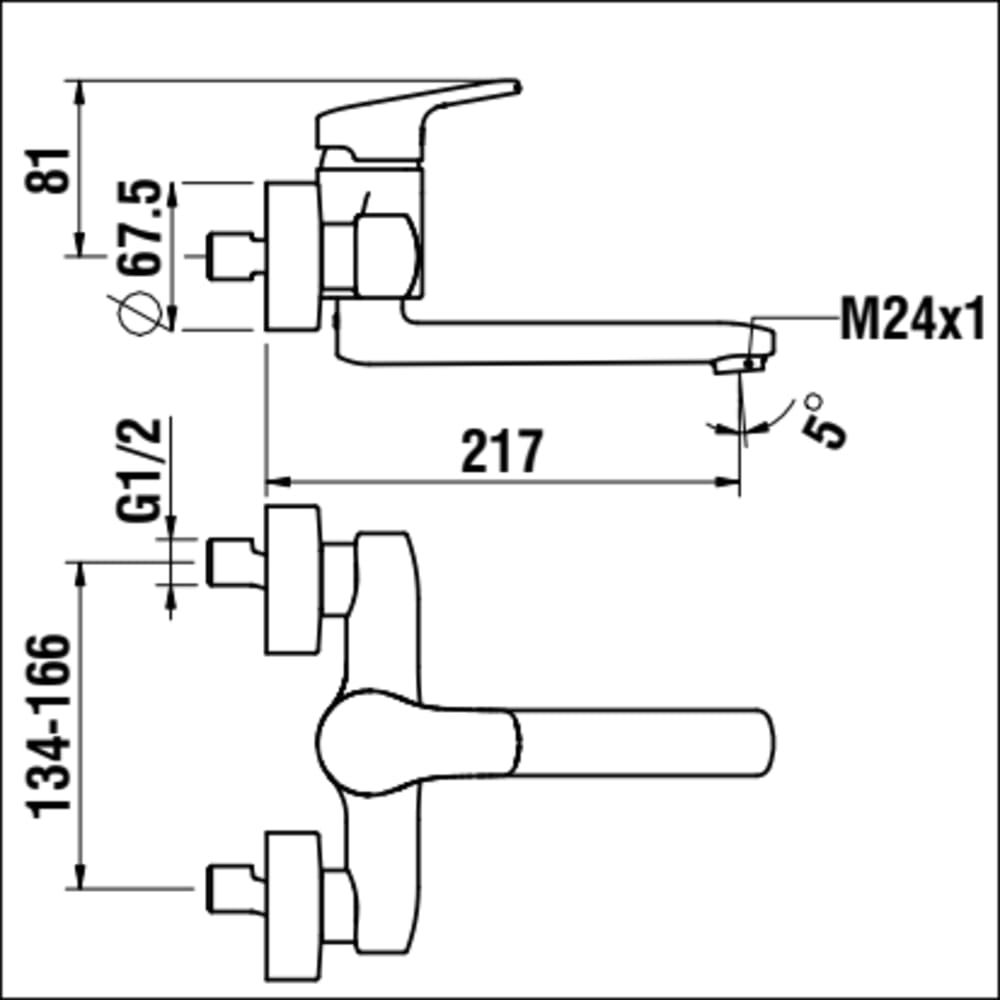LAUFEN CITYPRO Umývadlová nástenná páková batéria, rameno 225 mm, Chróm 100, HF500923100600