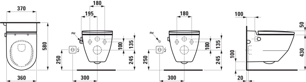 LAUFEN CLEANET NAVIA Závesné WC rimless so zabudovanou bidetovou spŕškou, WC sedadlo s poklopom so spomaľovacím mechanizmom, Biela LCC Active A00, 580x370 mm, H820601A007171