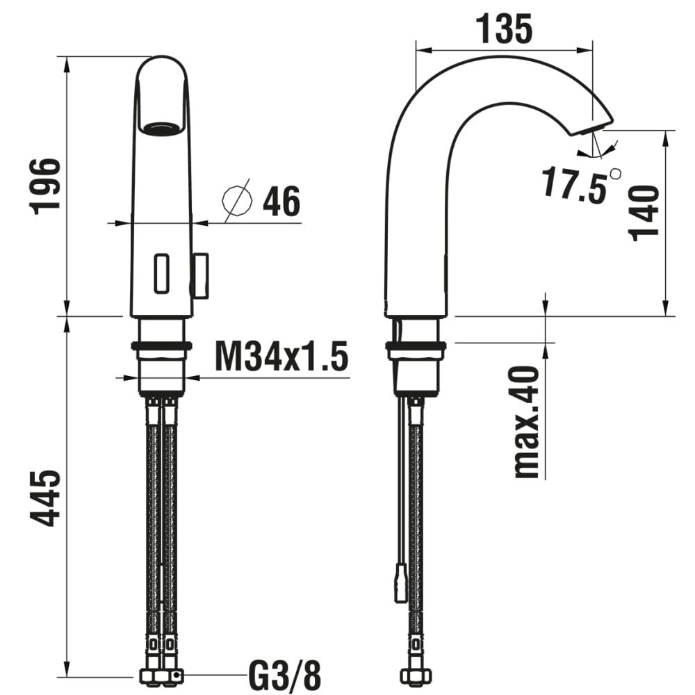 LAUFEN CURVETRONIC Elektronická umývadlová batéria s IR-Senzorom, výtok 135 mm napájanie: zo siete 230 V, s Bluetooth modulom, PVD inox kartáčovaná oceľ 423, HF707153423000