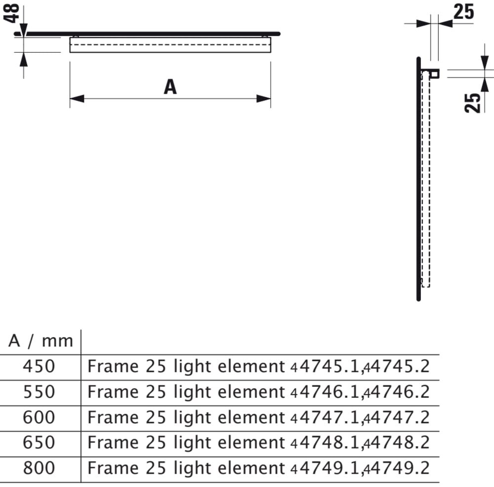 LAUFEN FRAME 25 Horizontálne prídavné osvetlenie s vypínačom, Chróm matná 007, H4474829000071