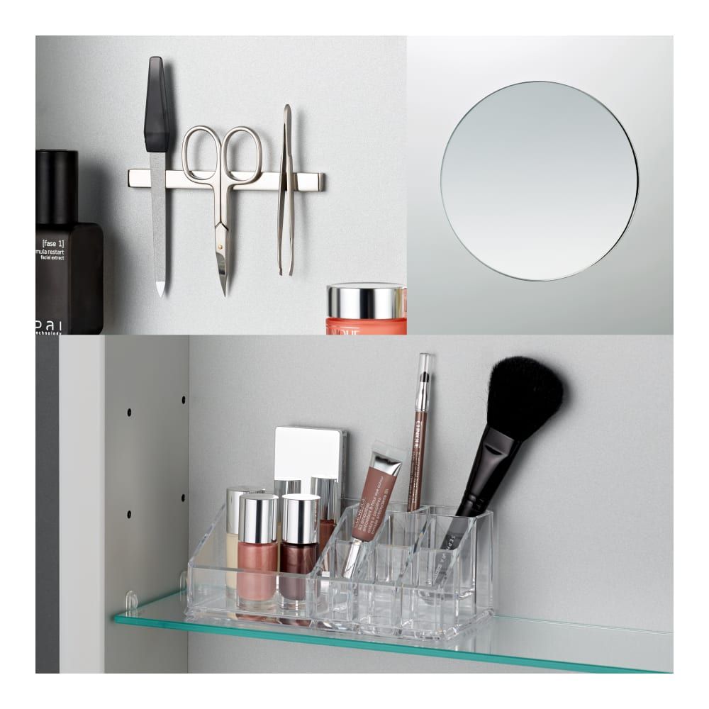 LAUFEN FRAME 25 Príslušenstvo FRAME 25: obsiahnuté 3 položky – organizér do zrkadlovej skrinky, samolepiace dodatočné zrkadielko, magnetický držiak nožníc, H4906009000001