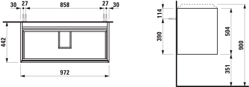 LAUFEN LANI Skrinka pod umývadlo, s 2 zásuvkami, pre umývadlo H814075, z materiálu Marbond, 970x440x515 mm, Šedá traffic 266, H4042721122661