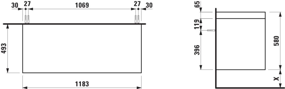 LAUFEN LANI Modulárna zostava 1200, umývadlová doska 65 mm (.260 šedá traffic), bez výrezu, s 2 zásuvkami, 1185x495x580 mm, Biela lesklá 261, H4055701122611