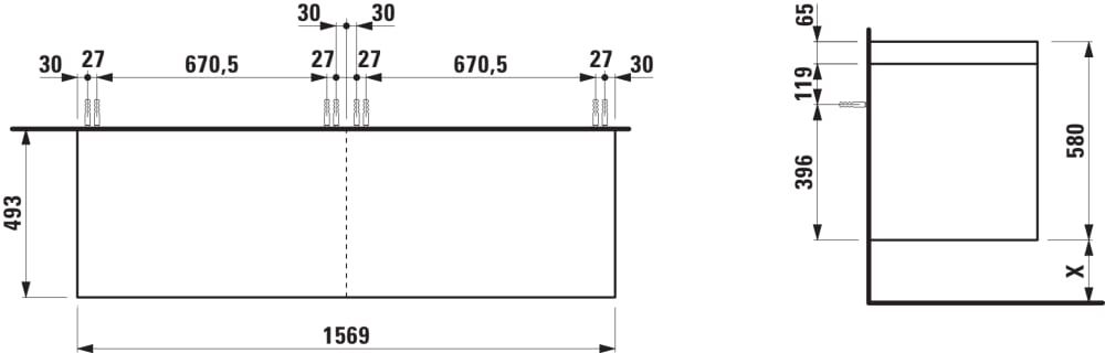 LAUFEN LANI Modulárna zostava 1600, umývadlová doska 65 mm (.267 divoký dub), bez výrezu, so 2 zásuvkami: zásuvkový element 800 + zásuvkový element 800, 1570x495x580 mm, Divoký dub 267, H4065901122671 Čítať viac