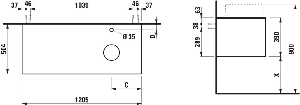 LAUFEN ARUN Zásuvkový element 1200, s 1 zásuvkou, s výrezom vpravo, s vrchnou doskou Ardesia Bianca vr. otvoru pre batériu, 1205x505x390 mm, Špeciálne farby 990, H4141271519901