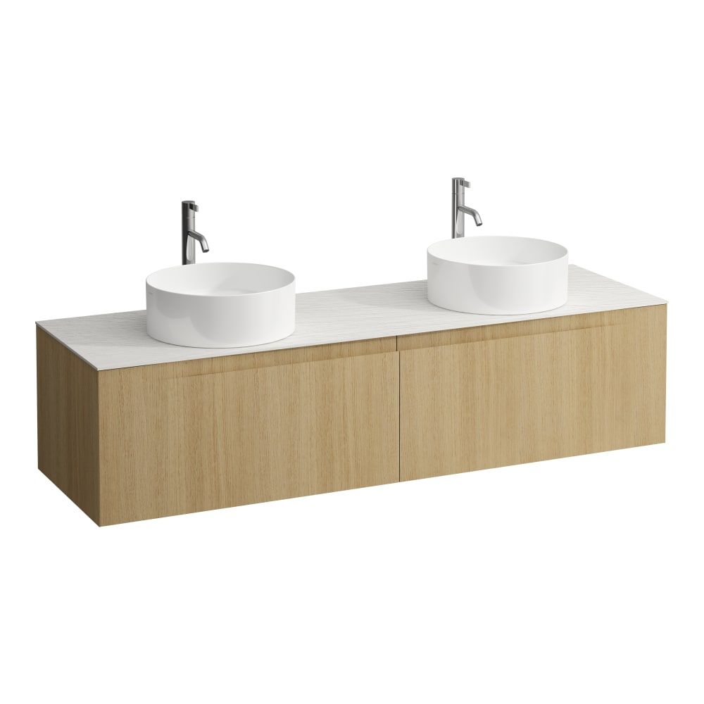 LAUFEN ARUN Zásuvkový element 1600, s 2 zásuvkami, s výrezom vľavo a vpravo, s vrchnou doskou Ardesia Bianca vr. otvoru pre batériu, 1605x505x390 mm, Bledý dub 250, H4141491512501