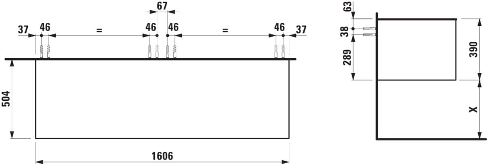 LAUFEN ARUN Zásuvkový element 1600, s 2 zásuvkami, bez výrezu, s vrchnou doskou Piasentina Grigio, 1605x505x390 mm, Noce Canaletto – drevená dyha 630, H4161401516301 Čítať viac
