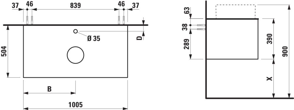 LAUFEN ARUN Zásuvkový element 1000, s 1 zásuvkou, s výrezom uprostred, so sklenenou vrchnou doskou vr. otvoru pre batériu, 1005x505x390 mm, Multicolour farby 999, H4181151519991