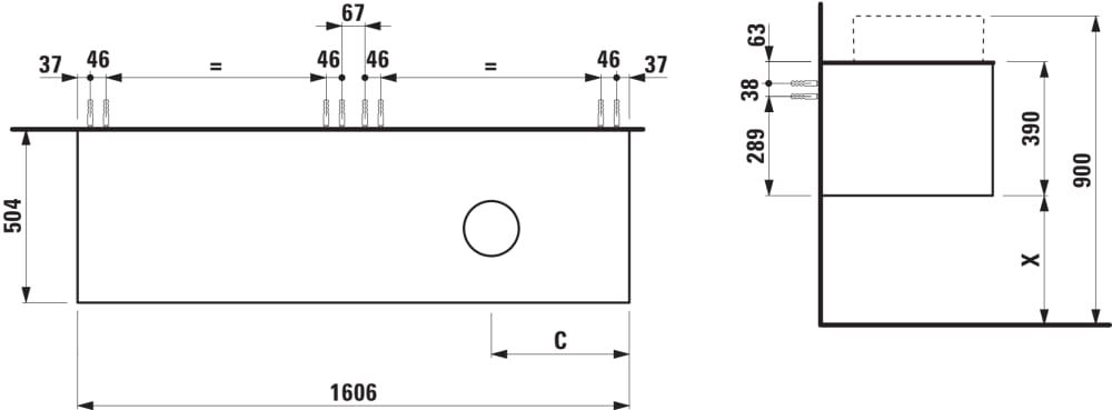 LAUFEN ARUN Zásuvkový element 1600, s 2 zásuvkami, s výrezom vpravo, so sklenenou vrchnou doskou, 1605x505x390 mm, Multicolour farby 999, H4181431519991