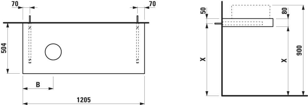 LAUFEN ARUN Umývadlová doska 1200, s výrezom vľavo, hrúbka 80 mm, vr. 2 nástenných držiakov, 1205x505x80 mm, Výber kamenných dekorov 770, H4191221517701