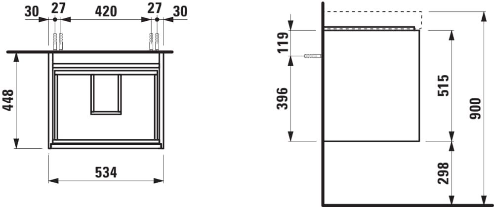 LAUFEN MEDA Skrinka pod umývadlo, s 2 zásuvkami, pre umývadlo H810112, 535x450x515 mm, Cappuccino 465, H4215620114651