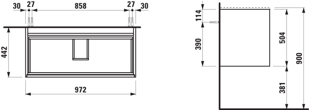 LAUFEN MEDA Skrinka pod umývadlo, 2 zásuvky, pre umývadlo H814118 z materiálu Marbond, 970x440x505 mm, Multicolour farby 999, H4216920119991
