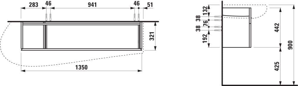 LAUFEN ILBAGNOALESSI Skrinka pod umývadlo 1600, s 1 zásuvkou, s výrezom pre sifón vľavo, pre umývadlo H814971, 1350x320x340 mm, Noce Canaletto – drevená dyha 630, H4304510976301