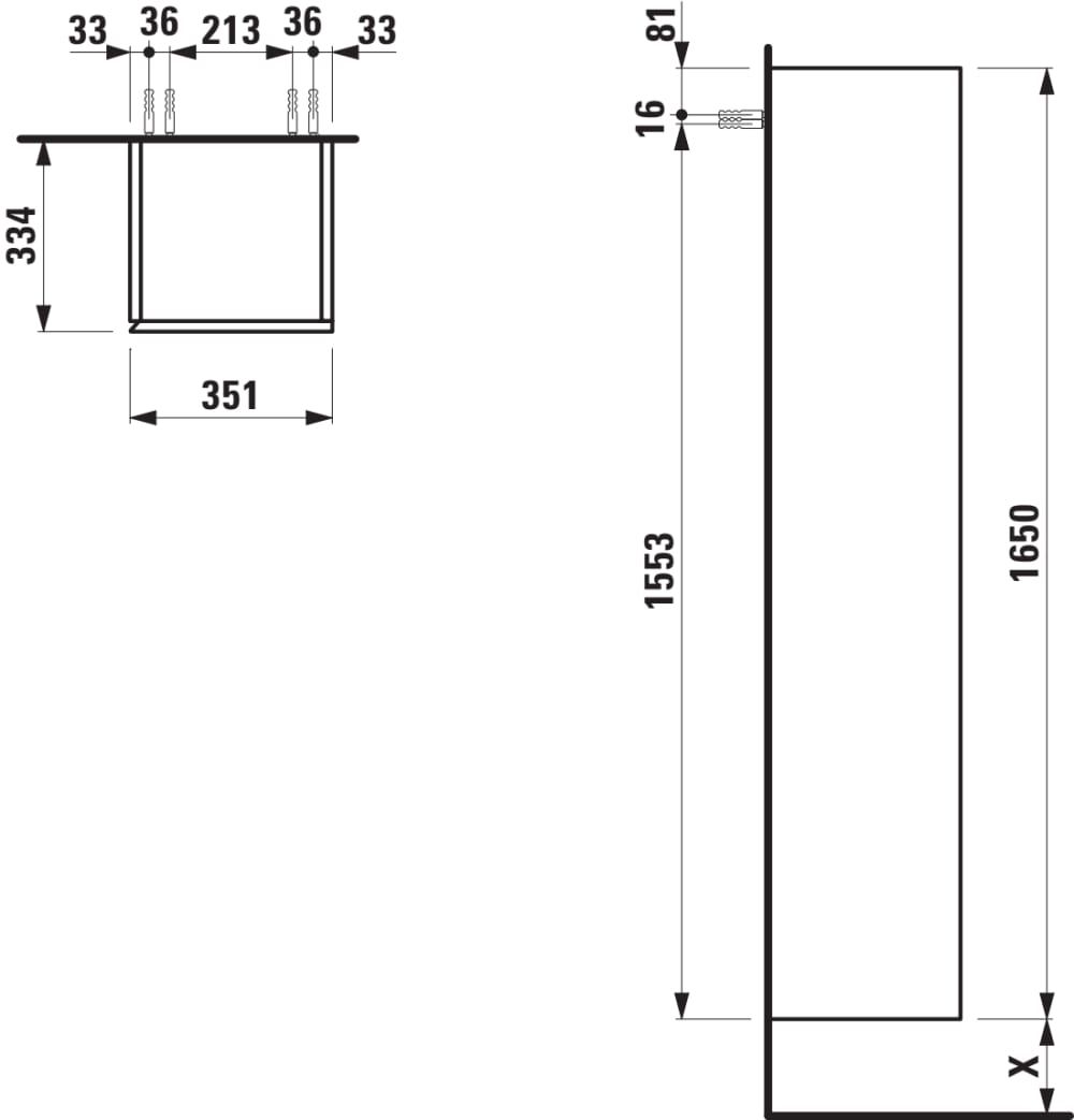 LAUFEN ILBAGNOALESSI Vysoká skrinka, pánty dvierok vpravo, 350x335x1650 mm, Noce Canaletto – drevená dyha 630, H4304620976301