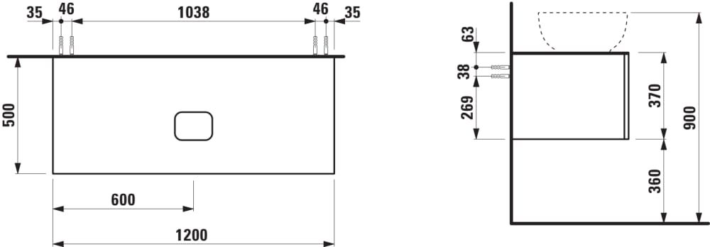LAUFEN ILBAGNOALESSI Zásuvkový element 1200, s 1 zásuvkou, s výrezom uprostred, top Calce Avorio, pre umývadlo H818975/6, H818977/8, 1200x500x370 mm, Multicolour farby 999, H4313110979991