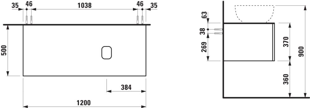 LAUFEN ILBAGNOALESSI Zásuvkový element 1200, s 1 zásuvkou, s výrezom vpravo, top Calce Avorio, pre umývadlo H818974, 1200x500x370 mm, Špeciálne farby 990, H4313230979901